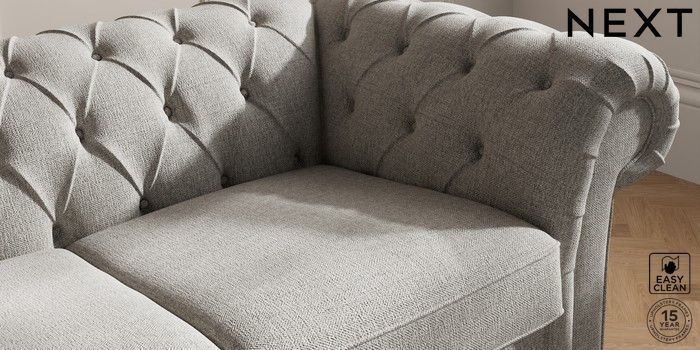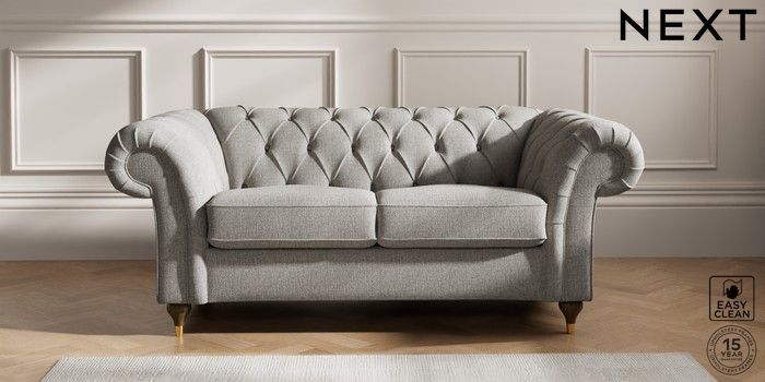 7.2.10 Gosford II Deep Sit 2 Seater Sofa Woven Chenille Easy Clean Light Grey Modern Turned Metal Cap - Mid | Made Click here to use our website with more accessibility support, for example screen readers