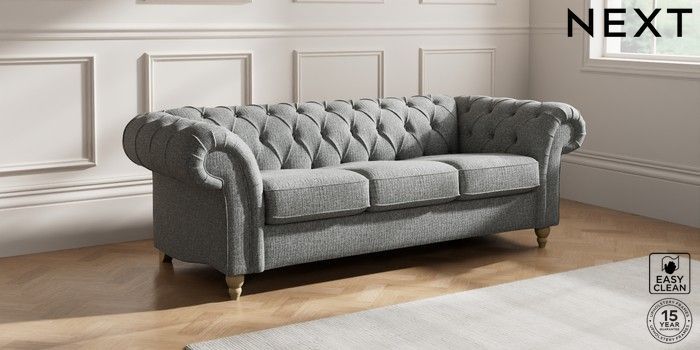 7.2.10 Gosford II Deep Sit 3 Cushion 3 Seater Sofa Chunky Boucle Easy Clean Mid Grey Low Turned - Light | Made Click here to use our website with more accessibility support, for example screen readers