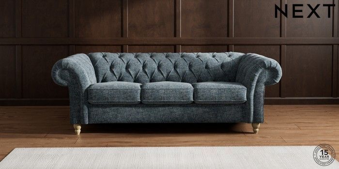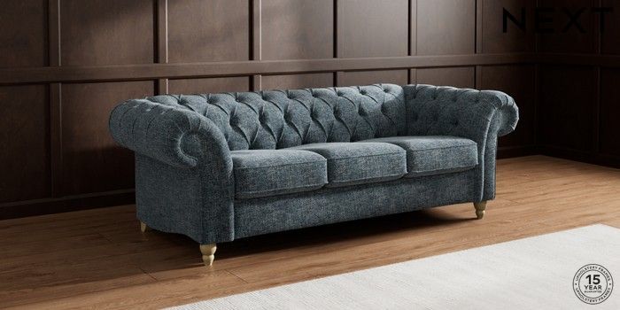 7.2.10 Gosford II Deep Sit 3 Cushion 3 Seater Sofa Chunky Chenille Dark Navy Blue Low Turned - Light | Made Click here to use our website with more accessibility support, for example screen readers