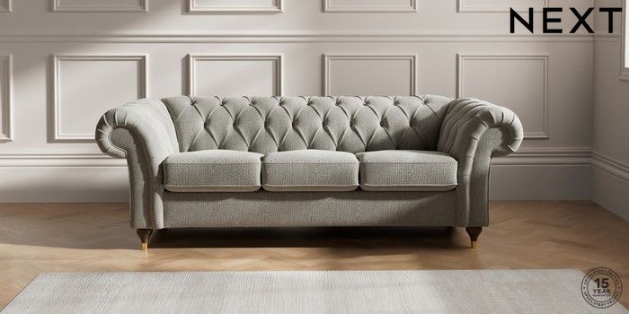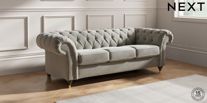 7.2.10 Gosford II Deep Sit 3 Cushion 3 Seater Sofa Chunky Texture Dove Modern Turned Metal Cap - Mid | Made Click here to use our website with more accessibility support, for example screen readers
