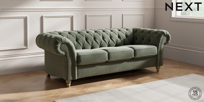 7.2.10 Gosford II Deep Sit 3 Cushion 3 Seater Sofa Chunky Texture Mid Forest Green Low Turned - Light | Made Click here to use our website with more accessibility support, for example screen readers