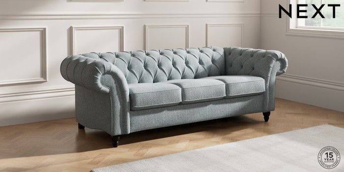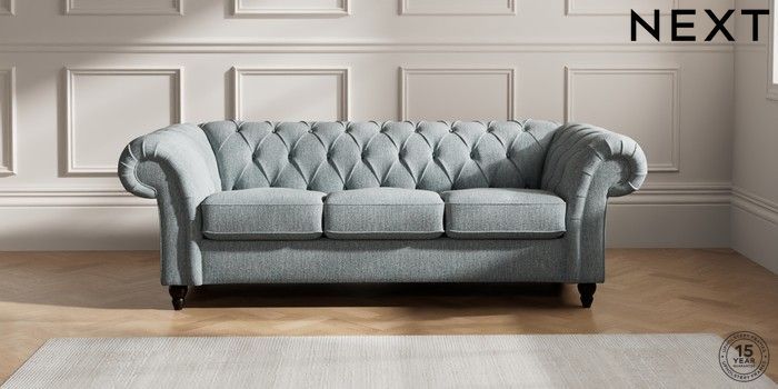 7.2.10 Gosford II Deep Sit 3 Cushion 3 Seater Sofa Chunky Weave Mid Blue Low Turned - Dark | Made Click here to use our website with more accessibility support, for example screen readers