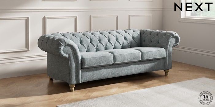 7.2.10 Gosford II Deep Sit 3 Cushion 3 Seater Sofa Chunky Weave Mid Blue Low Turned - Light | Made Click here to use our website with more accessibility support, for example screen readers