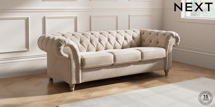 7.2.10 Gosford II Deep Sit 3 Cushion 3 Seater Sofa Cotswold Chenille Light Natural Low Turned - Light | Made Click here to use our website with more accessibility support, for example screen readers