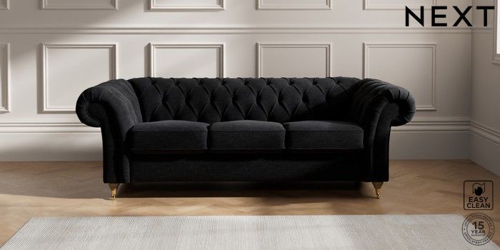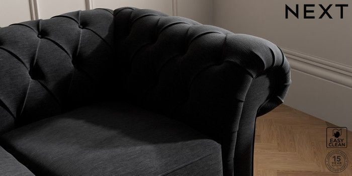 7.2.10 Gosford II Deep Sit 3 Cushion 3 Seater Sofa Fine Chenille Easy Clean Black Castor - Light | Made Click here to use our website with more accessibility support, for example screen readers
