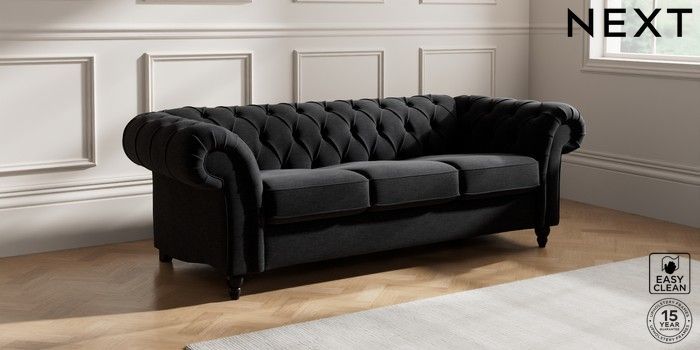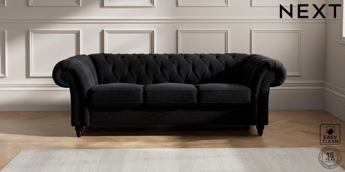 7.2.10 Gosford II Deep Sit 3 Cushion 3 Seater Sofa Fine Chenille Easy Clean Black Low Turned - Dark | Made Click here to use our website with more accessibility support, for example screen readers