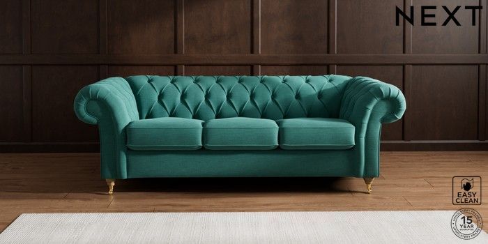 7.2.10 Gosford II Deep Sit 3 Cushion 3 Seater Sofa Fine Chenille Easy Clean Dark Juniper Green Castor - Light | Made Click here to use our website with more accessibility support, for example screen readers