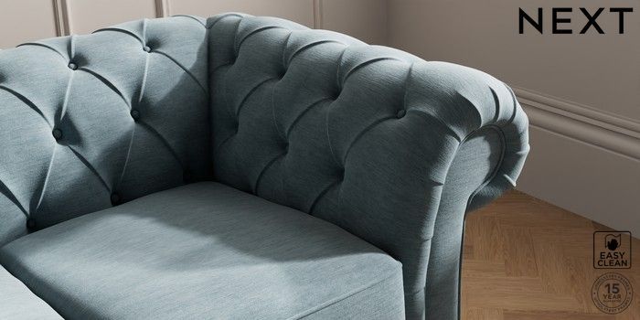 7.2.10 Gosford II Deep Sit 3 Cushion 3 Seater Sofa Fine Chenille Easy Clean Mid Blue Castor - Light | Made Click here to use our website with more accessibility support, for example screen readers