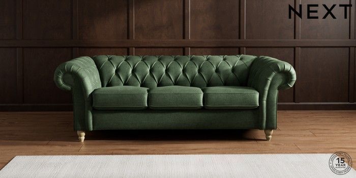 7.2.10 Gosford II Deep Sit 3 Cushion 3 Seater Sofa Luxe Chenille Dark Green Low Turned - Light | Made Click here to use our website with more accessibility support, for example screen readers