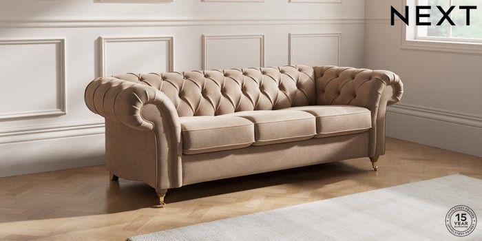 7.2.10 Gosford II Deep Sit 3 Cushion 3 Seater Sofa Luxe Chenille Mid Natural Castor - Light | Made Click here to use our website with more accessibility support, for example screen readers