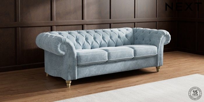 7.2.10 Gosford II Deep Sit 3 Cushion 3 Seater Sofa Plush Chenille Light Blue Low Turned - Light | Made Click here to use our website with more accessibility support, for example screen readers