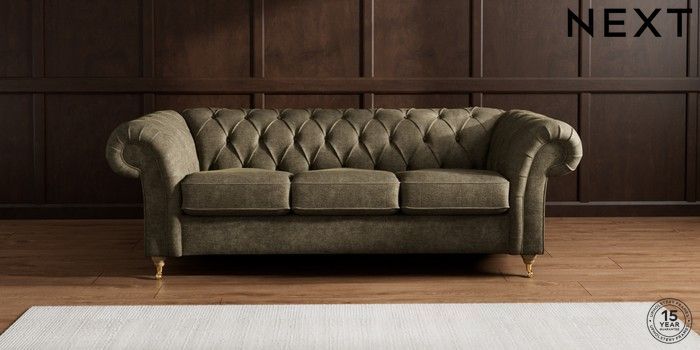 7.2.10 Gosford II Deep Sit 3 Cushion 3 Seater Sofa Plush Chenille Moss Green Castor - Light | Made Click here to use our website with more accessibility support, for example screen readers