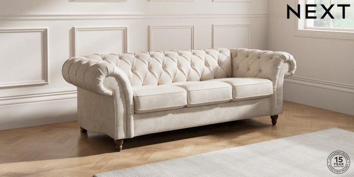 7.2.10 Gosford II Deep Sit 3 Cushion 3 Seater Sofa Plush Chenille Oyster Low Turned - Mid | Made Click here to use our website with more accessibility support, for example screen readers