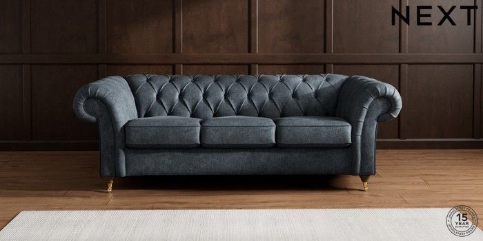 7.2.10 Gosford II Deep Sit 3 Cushion 3 Seater Sofa Plush Chenille Slate Blue Castor - Mid | Made Click here to use our website with more accessibility support, for example screen readers