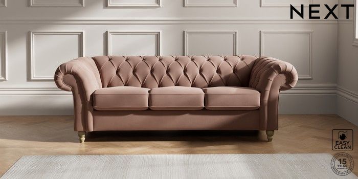 7.2.10 Gosford II Deep Sit 3 Cushion 3 Seater Sofa Plush Velvet Easy Clean Mid Natural Low Turned - Light | Made Click here to use our website with more accessibility support, for example screen readers
