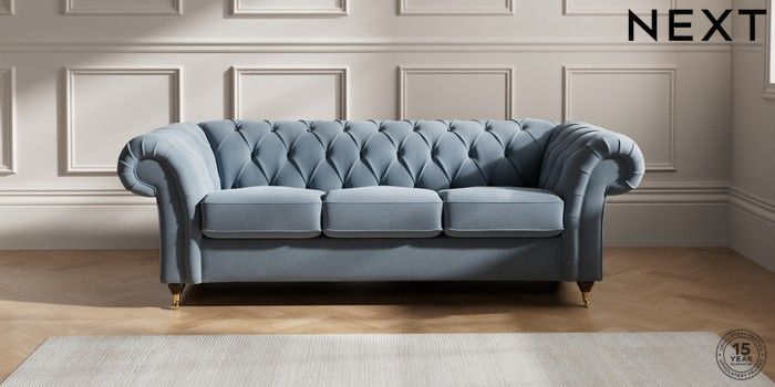 7.2.10 Gosford II Deep Sit 3 Cushion 3 Seater Sofa Relaxed Linen Look Mid Blue Castor - Mid | Made Click here to use our website with more accessibility support, for example screen readers