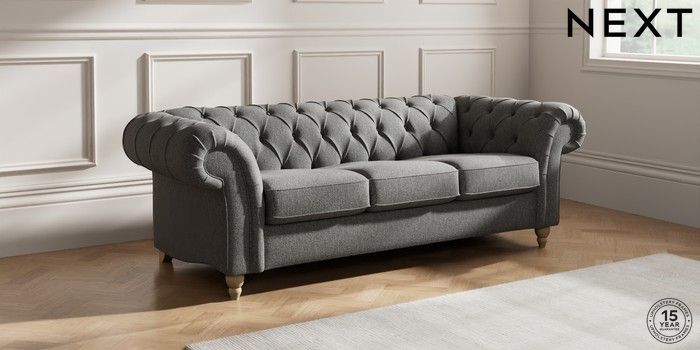 7.2.10 Gosford II Deep Sit 3 Cushion 3 Seater Sofa Tweedy Chenille Dark Grey Low Turned - Light | Made Click here to use our website with more accessibility support, for example screen readers