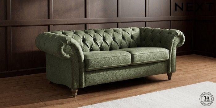 7.2.10 Gosford II Deep Sit 3 Seater Small Sofa Boucle Chenille Dark Moss Green Low Turned - Mid | Made Click here to use our website with more accessibility support, for example screen readers
