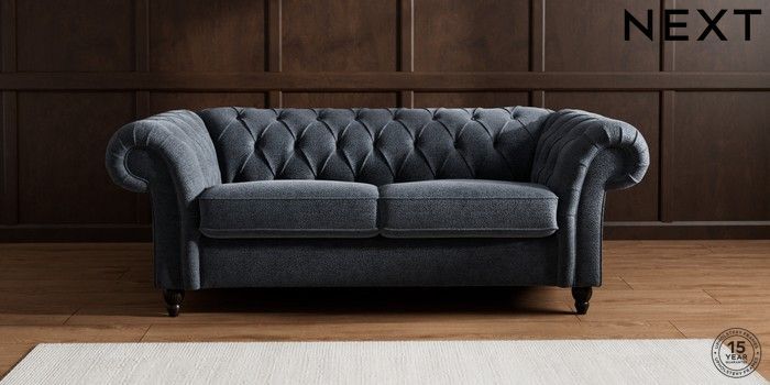 7.2.10 Gosford II Deep Sit 3 Seater Small Sofa Boucle Chenille Dark Slate Blue Low Turned - Dark | Made Click here to use our website with more accessibility support, for example screen readers