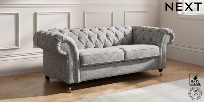7.2.10 Gosford II Deep Sit 3 Seater Small Sofa Chunky Boucle Easy Clean Light Grey Castor - Dark | Made Click here to use our website with more accessibility support, for example screen readers