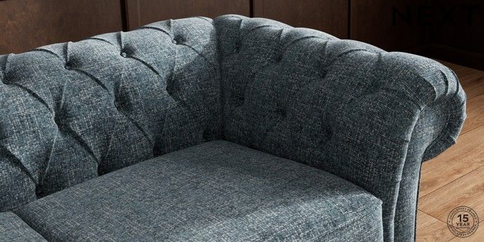 7.2.10 Gosford II Deep Sit 3 Seater Small Sofa Chunky Chenille Dark Navy Blue Modern Turned Metal Cap - Mid | Made Click here to use our website with more accessibility support, for example screen readers