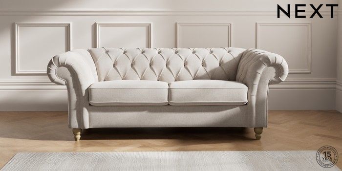 7.2.10 Gosford II Deep Sit 3 Seater Small Sofa Chunky Chenille Oyster Low Turned - Light | Made Click here to use our website with more accessibility support, for example screen readers