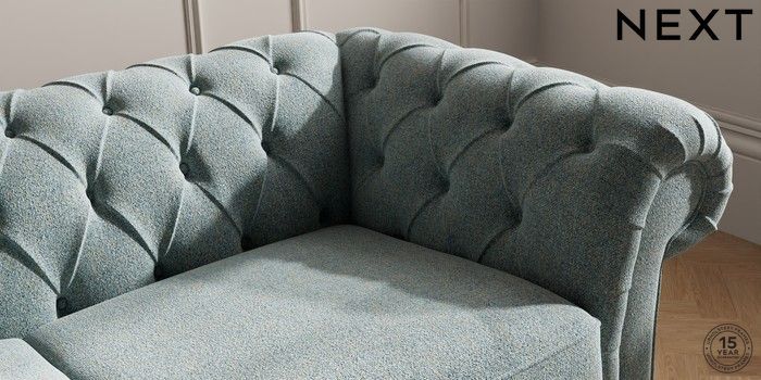7.2.10 Gosford II Deep Sit 3 Seater Small Sofa Chunky Marl Mid Blue Low Turned - Light | Made Click here to use our website with more accessibility support, for example screen readers