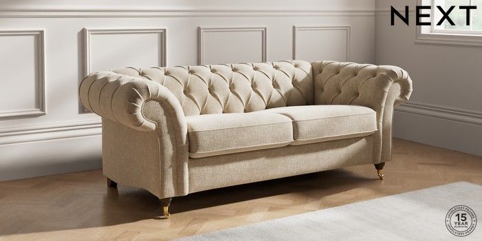 7.2.10 Gosford II Deep Sit 3 Seater Small Sofa Chunky Weave Cream Castor - Mid | Made Click here to use our website with more accessibility support, for example screen readers