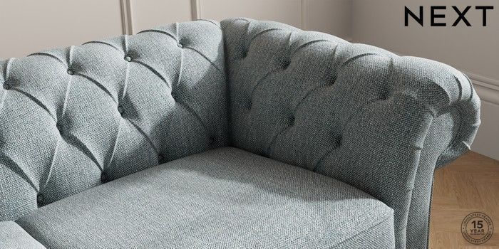 7.2.10 Gosford II Deep Sit 3 Seater Small Sofa Chunky Weave Mid Blue Castor - Dark | Made Click here to use our website with more accessibility support, for example screen readers