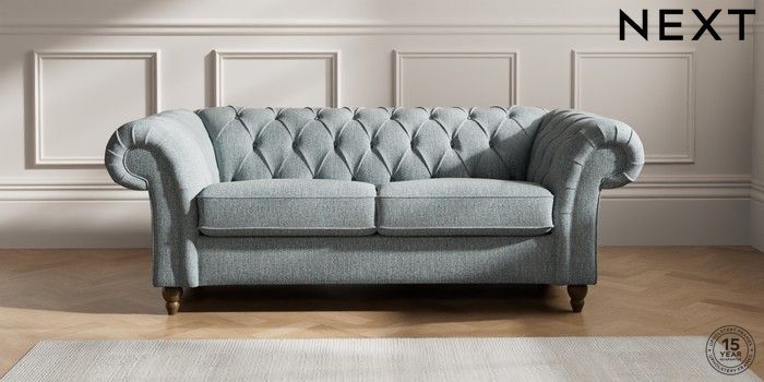 7.2.10 Gosford II Deep Sit 3 Seater Small Sofa Chunky Weave Mid Blue Low Turned - Mid | Made Click here to use our website with more accessibility support, for example screen readers