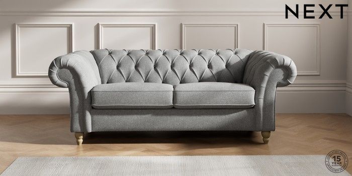 7.2.10 Gosford II Deep Sit 3 Seater Small Sofa Chunky Weave Mid Grey Low Turned - Light | Made Click here to use our website with more accessibility support, for example screen readers