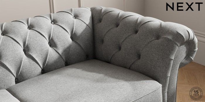 7.2.10 Gosford II Deep Sit 3 Seater Small Sofa Chunky Weave Mid Grey Modern Turned Metal Cap - Mid | Made Click here to use our website with more accessibility support, for example screen readers