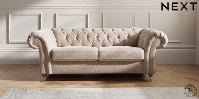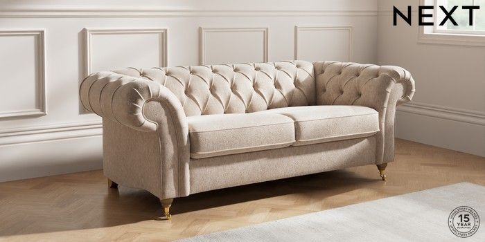 7.2.10 Gosford II Deep Sit 3 Seater Small Sofa Cotswold Chenille Light Natural Castor - Light | Made Click here to use our website with more accessibility support, for example screen readers