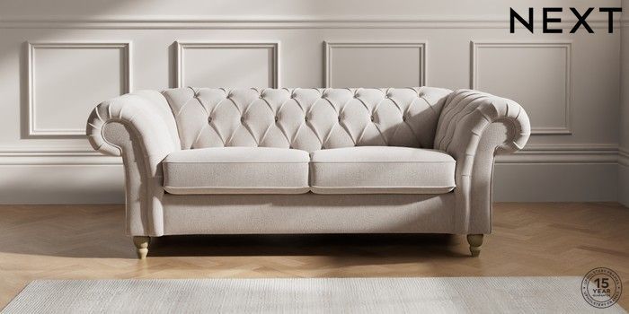 7.2.10 Gosford II Deep Sit 3 Seater Small Sofa Cotswold Chenille Oyster Low Turned - Light | Made Click here to use our website with more accessibility support, for example screen readers