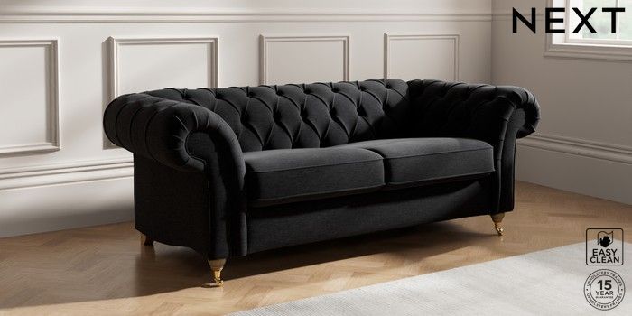 7.2.10 Gosford II Deep Sit 3 Seater Small Sofa Fine Chenille Easy Clean Black Castor - Light | Made Click here to use our website with more accessibility support, for example screen readers