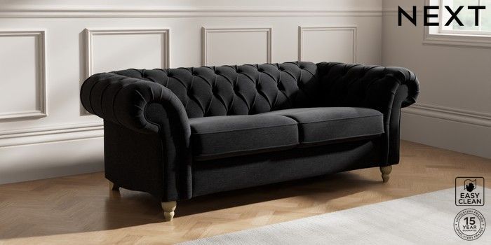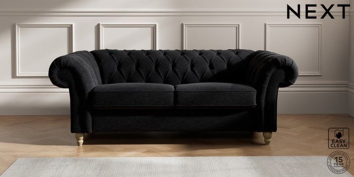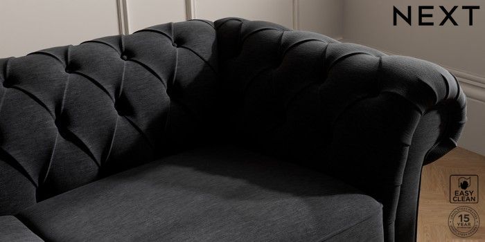 7.2.10 Gosford II Deep Sit 3 Seater Small Sofa Fine Chenille Easy Clean Black Low Turned - Light | Made Click here to use our website with more accessibility support, for example screen readers