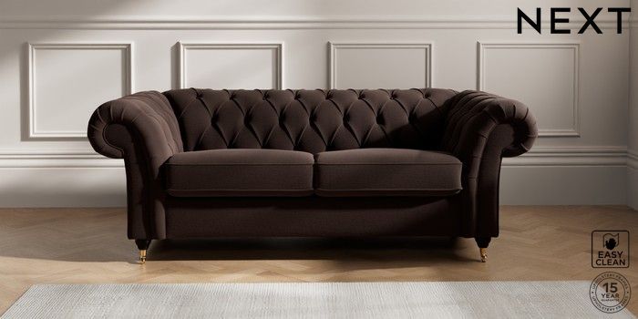 7.2.10 Gosford II Deep Sit 3 Seater Small Sofa Fine Chenille Easy Clean Chocolate Brown Castor - Dark | Made Click here to use our website with more accessibility support, for example screen readers