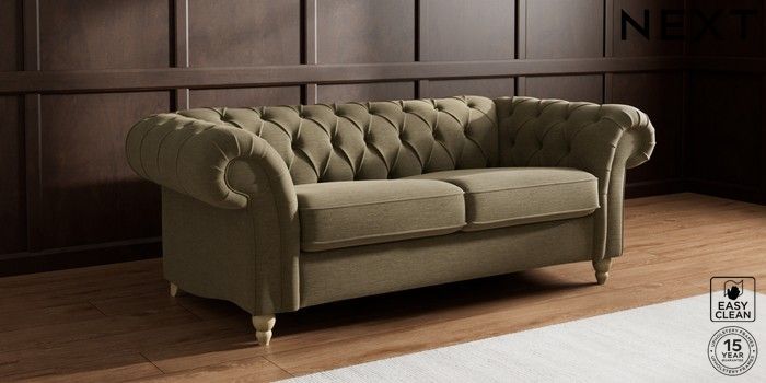 7.2.10 Gosford II Deep Sit 3 Seater Small Sofa Fine Chenille Easy Clean Dark Moss Green Low Turned - Light | Made Click here to use our website with more accessibility support, for example screen readers