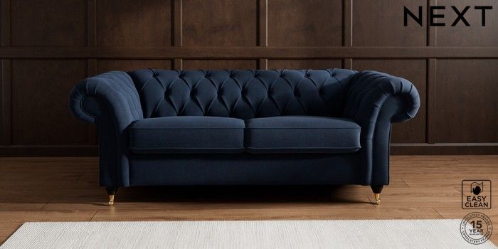 7.2.10 Gosford II Deep Sit 3 Seater Small Sofa Fine Chenille Easy Clean Dark Navy Blue Castor - Dark | Made Click here to use our website with more accessibility support, for example screen readers
