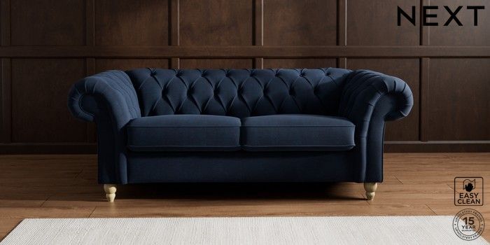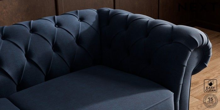 7.2.10 Gosford II Deep Sit 3 Seater Small Sofa Fine Chenille Easy Clean Dark Navy Blue Low Turned - Light | Made Click here to use our website with more accessibility support, for example screen readers