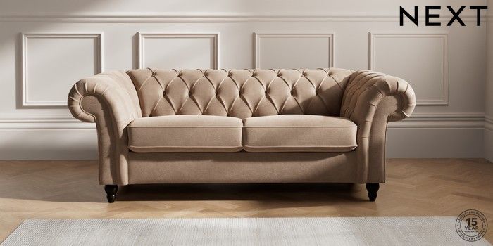7.2.10 Gosford II Deep Sit 3 Seater Small Sofa Luxe Chenille Mid Natural Low Turned - Dark | Made Click here to use our website with more accessibility support, for example screen readers