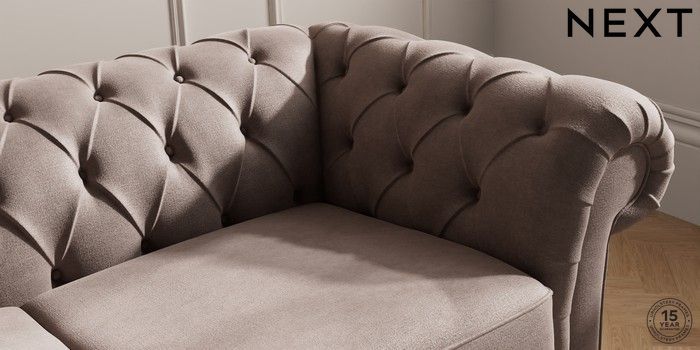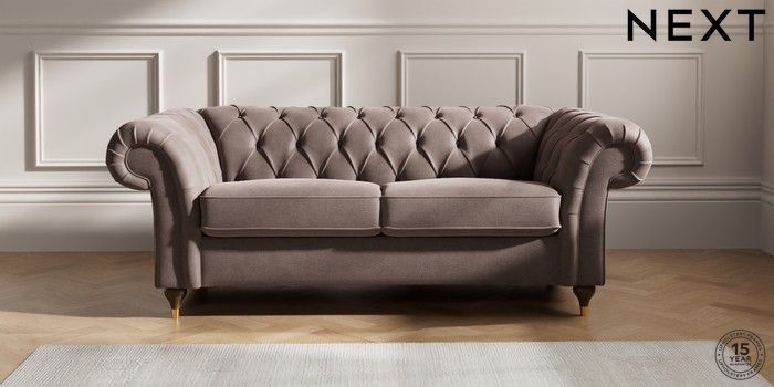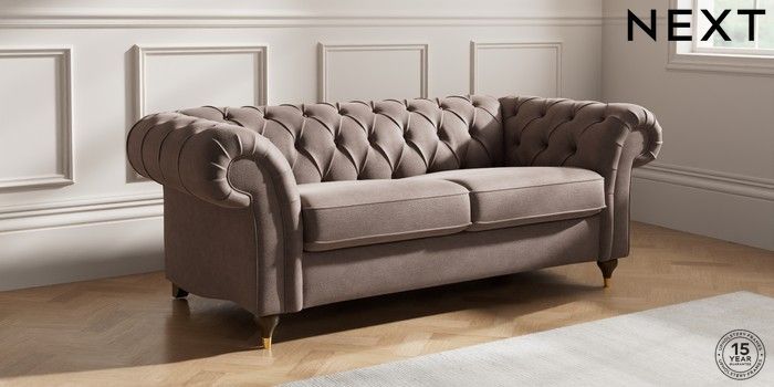 7.2.10 Gosford II Deep Sit 3 Seater Small Sofa Luxe Chenille Mink Brown Modern Turned Metal Cap - Mid | Made Click here to use our website with more accessibility support, for example screen readers