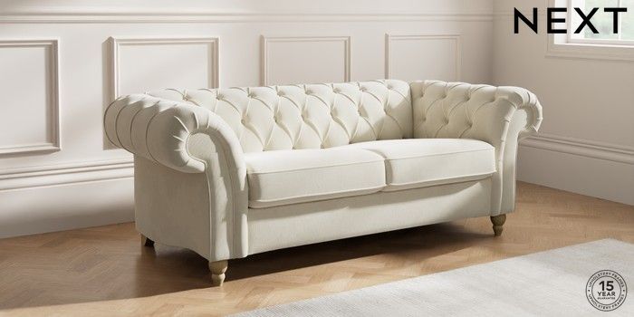 7.2.10 Gosford II Deep Sit 3 Seater Small Sofa Luxe Chenille Oyster Low Turned - Light | Made Click here to use our website with more accessibility support, for example screen readers