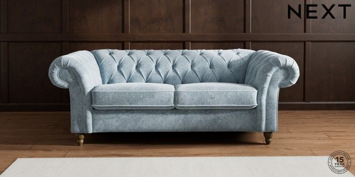 7.2.10 Gosford II Deep Sit 3 Seater Small Sofa Plush Chenille Light Blue Low Turned - Mid | Made Click here to use our website with more accessibility support, for example screen readers