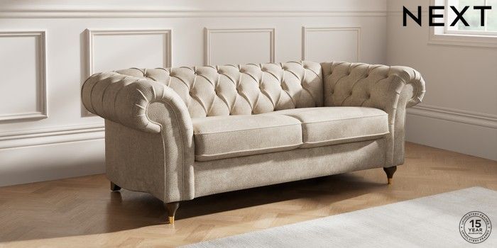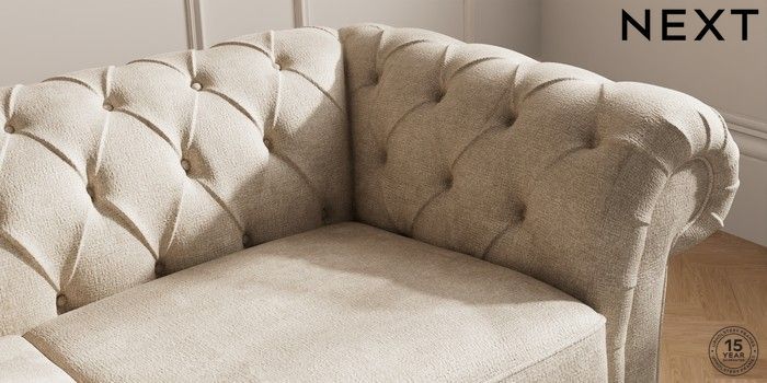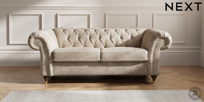 7.2.10 Gosford II Deep Sit 3 Seater Small Sofa Plush Chenille Light Natural Modern Turned Metal Cap - Mid | Made Click here to use our website with more accessibility support, for example screen readers