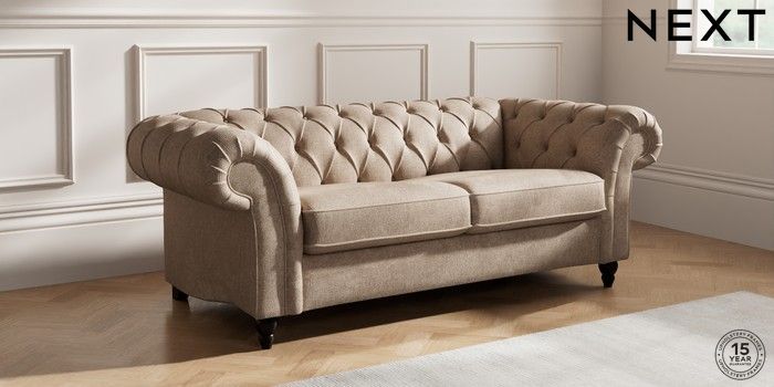 7.2.10 Gosford II Deep Sit 3 Seater Small Sofa Plush Chenille Mid Natural Low Turned - Dark | Made Click here to use our website with more accessibility support, for example screen readers