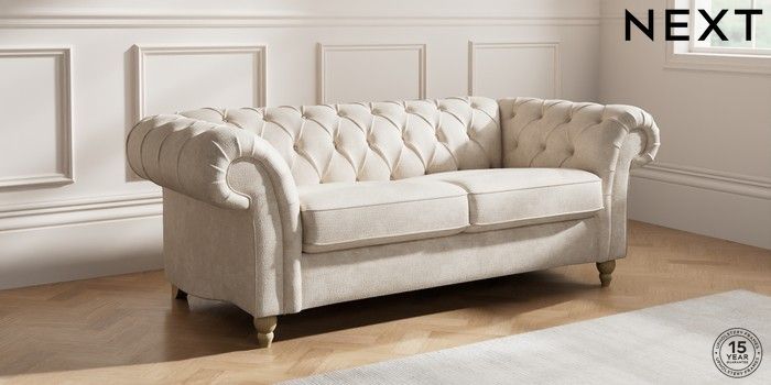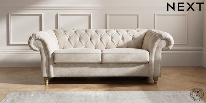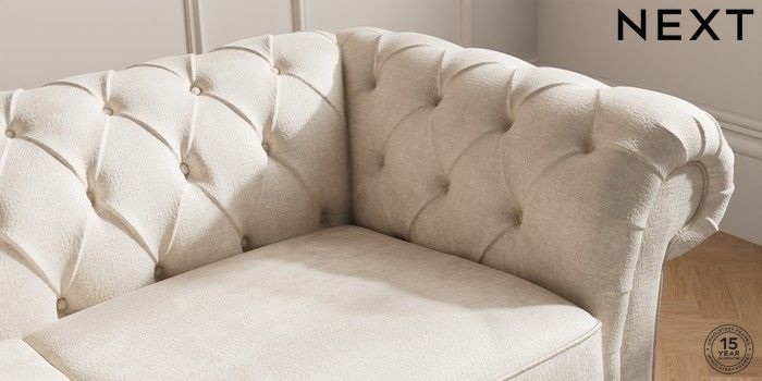 7.2.10 Gosford II Deep Sit 3 Seater Small Sofa Plush Chenille Oyster Low Turned - Light | Made Click here to use our website with more accessibility support, for example screen readers