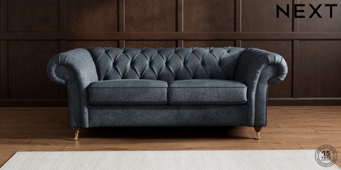 7.2.10 Gosford II Deep Sit 3 Seater Small Sofa Plush Chenille Slate Blue Castor - Mid | Made Click here to use our website with more accessibility support, for example screen readers