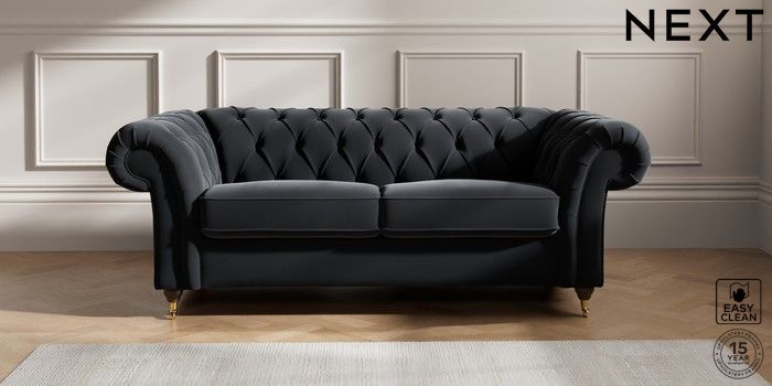 7.2.10 Gosford II Deep Sit 3 Seater Small Sofa Plush Velvet Easy Clean Charcoal Grey Castor - Mid | Made Click here to use our website with more accessibility support, for example screen readers