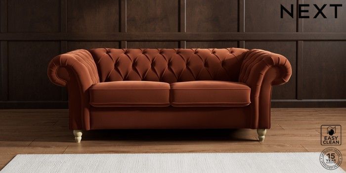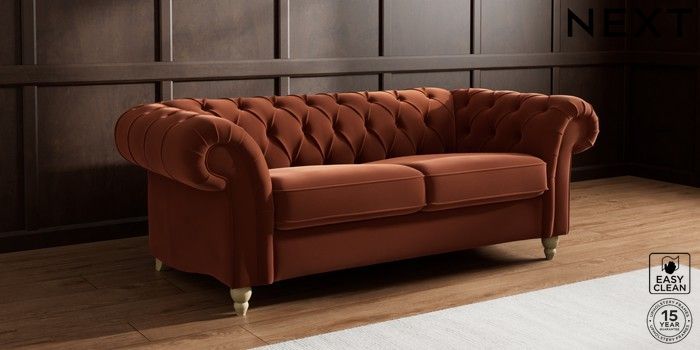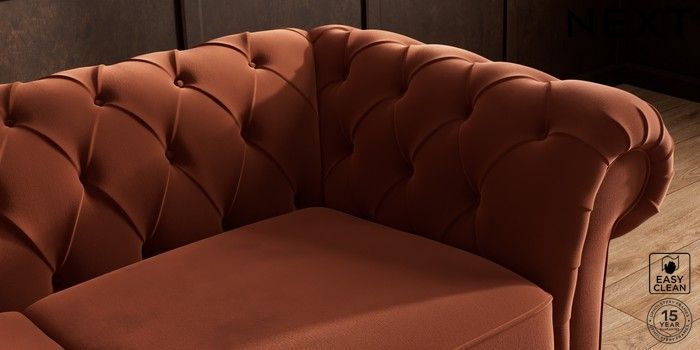 7.2.10 Gosford II Deep Sit 3 Seater Small Sofa Plush Velvet Easy Clean Ginger Orange Low Turned - Light | Made Click here to use our website with more accessibility support, for example screen readers